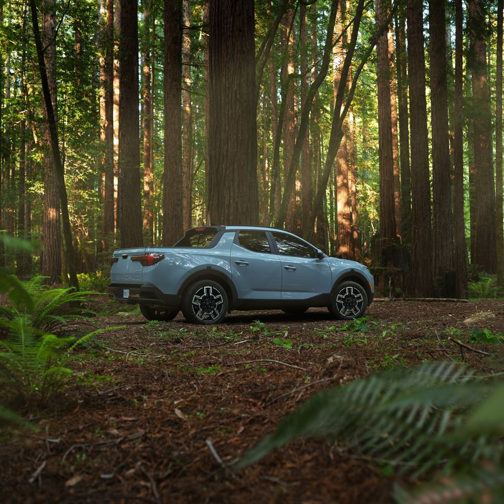 The SANTA CRUZ also introduces fresh exterior colors, such as Rockwood Green and Canyon Red, a power sunroof on higher trims, LED headlights and taillights, and functional roof side rails. These updates enhance the truck's bold appearance and off-road capability.