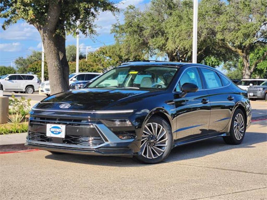 $2,000 off MSRP! New Price! Abyss Black 2025 Hyundai Sonata Hybrid Limited 4D Sedan Limited FWD 6-Speed Automatic with Shiftronic I4 Option Group 01, 12 Speakers, 17" x 7.0J Aluminum Alloy Wheels, 4-Wheel Disc Brakes, ABS brakes, Air Conditioning, Alloy wheels, AM/FM radio: SiriusXM, Apple CarPlay & Android Auto, Auto High-beam Headlights, Auto-dimming Rear-View mirror, Automatic temperature control, Brake assist, Bumpers: body-color, Cargo Net, Cargo Tray, Carpeted Floor Mats, Delay-off headlights, Driver door bin, Driver vanity mirror, Dual front impact airbags, Dual front side impact airbags, Electronic Stability Control, Emergency communication system: Bluelink+, First Aid Kit, Four wheel independent suspension, Front anti-roll bar, Front Bucket Seats, Front Center Armrest, Front dual zone A/C, Front reading lights, Fully automatic headlights, Heads-Up Display, Heated & Ventilated Front Bucket Seats, Heated door mirrors, Heated front seats, Heated steering wheel, Illuminated entry, Knee airbag, Lane Departure Warning System, Leather Seating Surfaces, Leather steering wheel, Low tire pressure warning, Memory seat, Mud Guards, Navigation System, Occupant sensing airbag, Outside temperature display, Overhead airbag, Overhead console, Panic alarm, Passenger door bin, Passenger vanity mirror, Power door mirrors, Power driver seat, Power moonroof, Power passenger seat, Power steering, Power windows, Radio data system, Radio: AM/FM/HD/SiriusXM, Rain sensing wipers, Rear anti-roll bar, Rear seat center armrest, Rear side impact airbag, Rear window defroster, Remote keyless entry, Security system, Speed control, Speed-sensing steering, Speed-Sensitive Wipers, Split folding rear seat, Spoiler, Steering wheel mounted audio controls, Tachometer, Telescoping steering wheel, Tilt steering wheel, Traction control, Trip computer, Variably intermittent wipers, and Ventilated front seats.