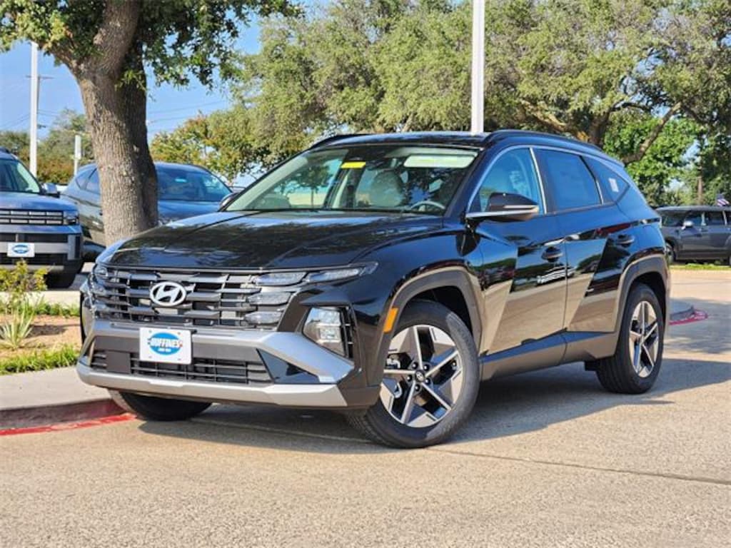 $1,750 off MSRP! New Price! Phantom Black 2025 Hyundai Tucson SEL Convenience 4D Sport Utility SEL Convenience FWD 8-Speed Automatic with SHIFTRONIC 2.5L I4 DGI DOHC 16V LEV3-SULEV30 187hp Option Group 01, 18" Alloy Wheels, 4-Wheel Disc Brakes, 6 Speakers, ABS brakes, Air Conditioning, Alloy wheels, AM/FM radio: SiriusXM, Apple CarPlay & Android Auto, Auto High-beam Headlights, Auto-dimming Rear-View mirror, Automatic temperature control, Brake assist, Bumpers: body-color, Cargo Blocks, Cargo Cover, Cargo Net, Cargo Tray, Carpeted Floor Mats, Delay-off headlights, Driver door bin, Driver vanity mirror, Dual front impact airbags, Dual front side impact airbags, Electronic Stability Control, Emergency communication system: Bluelink+, First Aid Kit, Four wheel independent suspension, Front anti-roll bar, Front Bucket Seats, Front Center Armrest, Front dual zone A/C, Front reading lights, Fully automatic headlights, H-Tex Seat Trim, Heated door mirrors, Heated Front Bucket Seats, Heated front seats, Illuminated entry, Leather steering wheel, Low tire pressure warning, Navigation System, Occupant sensing airbag, Outside temperature display, Overhead airbag, Overhead console, Panic alarm, Passenger door bin, Passenger vanity mirror, Power door mirrors, Power driver seat, Power Liftgate, Power moonroof, Power steering, Power windows, Radio data system, Radio: AM/FM/HD Audio System, Rear anti-roll bar, Rear reading lights, Rear seat center armrest, Rear side impact airbag, Rear window defroster, Rear window wiper, Remote keyless entry, Security system, Speed control, Split folding rear seat, Spoiler, Steering wheel mounted audio controls, Tachometer, Telescoping steering wheel, Tilt steering wheel, Tow Hitch, Traction control, Trip computer, Turn signal indicator mirrors, and Variably intermittent wipers.