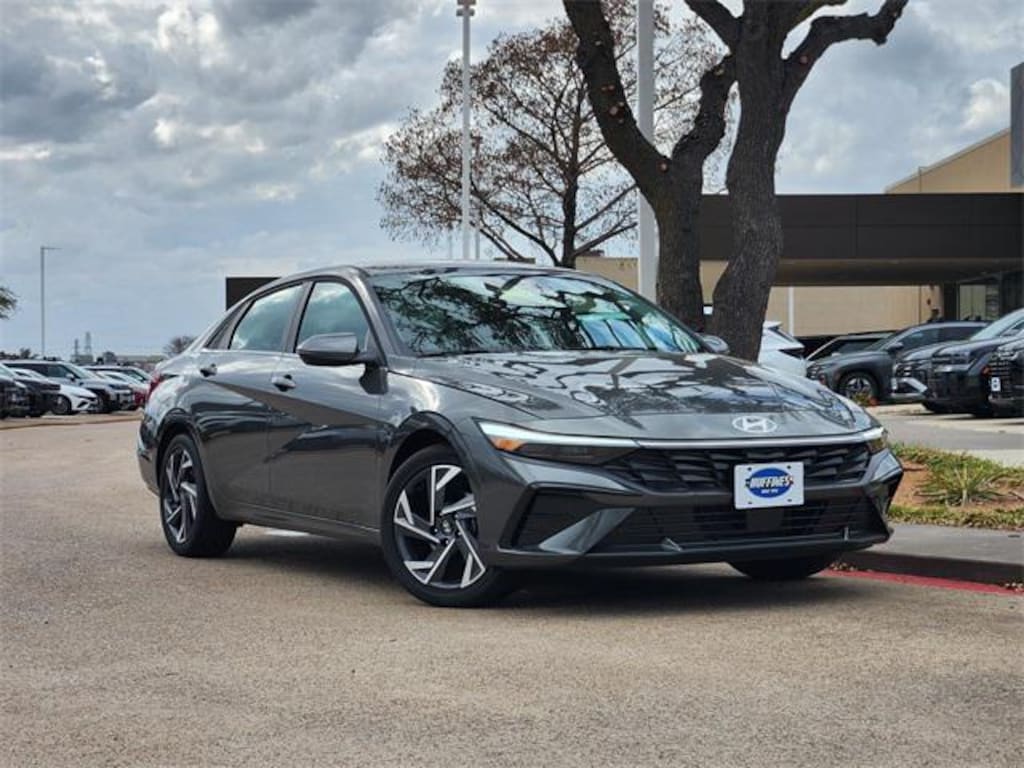 Gray 2026 Hyundai Elantra Limited 4D Sedan Limited FWD CVT I4 Option Group 01, 4-Wheel Disc Brakes, 8 Speakers, ABS brakes, Air Conditioning, Alloy wheels, AM/FM radio: SiriusXM, Apple CarPlay & Android Auto, Auto High-beam Headlights, Auto-dimming Rear-View mirror, Automatic temperature control, Brake assist, Bumpers: body-color, Cargo Net, Cargo Side Bins, Cargo Tray, Carpeted Floor Mats, Delay-off headlights, Driver door bin, Driver vanity mirror, Dual front impact airbags, Dual front side impact airbags, Electronic Stability Control, Emergency communication system: None, Exterior Parking Camera Rear, First Aid Kit, Front anti-roll bar, Front Bucket Seats, Front Center Armrest, Front dual zone A/C, Front reading lights, Front wheel independent suspension, Fully automatic headlights, H-Tex Leatherette Seats, Heated door mirrors, Heated Front Bucket Seats, Heated front seats, Illuminated entry, Low tire pressure warning, Navigation System, Occupant sensing airbag, Outside temperature display, Overhead airbag, Overhead console, Panic alarm, Passenger door bin, Passenger vanity mirror, Power door mirrors, Power driver seat, Power moonroof, Power steering, Power windows, Radio: AM/FM/HD/SiriusXM Display Audio, Rear seat center armrest, Rear side impact airbag, Rear window defroster, Remote keyless entry, Security system, Severe Weather Kit, Speed control, Speed-sensing steering, Split folding rear seat, Steering wheel mounted audio controls, Tachometer, Telescoping steering wheel, Tilt steering wheel, Traction control, Trip computer, Turn signal indicator mirrors, Variably intermittent wipers, and Wheels: 17" x 7.0J Machine Finish Alloy.
