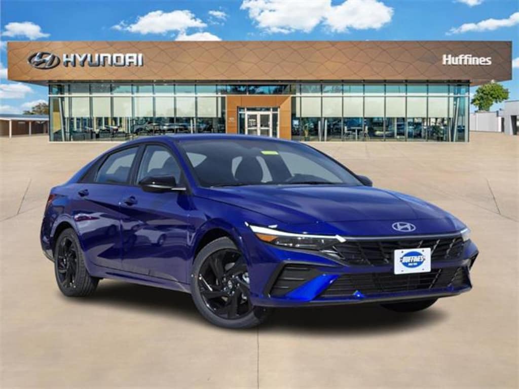 Intense Blue 2026 Hyundai Elantra SEL Sport 4D Sedan SEL Sport FWD CVT I4 Option Group 01, 4-Wheel Disc Brakes, 6 Speakers, ABS brakes, Air Conditioning, All-Season Fitted Liners, Alloy wheels, AM/FM radio, Apple CarPlay & Android Auto, Auto High-beam Headlights, Automatic temperature control, Brake assist, Bumpers: body-color, Cargo Tray, Carpeted Floor Mats, Center Console Tray, Delay-off headlights, Driver door bin, Driver vanity mirror, Dual front impact airbags, Dual front side impact airbags, Electronic Stability Control, Exterior Parking Camera Rear, First Aid Kit, Front anti-roll bar, Front Bucket Seats, Front Center Armrest, Front dual zone A/C, Front reading lights, Front wheel independent suspension, Fully automatic headlights, Illuminated entry, Low tire pressure warning, Occupant sensing airbag, Outside temperature display, Overhead airbag, Overhead console, Panic alarm, Passenger door bin, Passenger vanity mirror, Power door mirrors, Power steering, Power windows, Premium Cloth Seat Trim, Radio: AM/FM/HD Display Audio, Rear side impact airbag, Rear window defroster, Remote keyless entry, Security system, Speed control, Speed-sensing steering, Spoiler, Steering wheel mounted audio controls, Tachometer, Telescoping steering wheel, Tilt steering wheel, Traction control, Trip computer, Variably intermittent wipers, and Wheels: 17" x 7.0J Alloy Gloss Black w/Dark Finish.