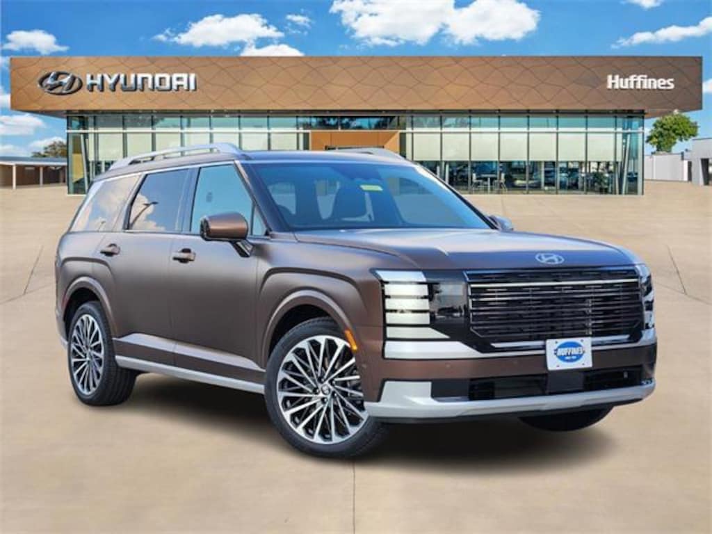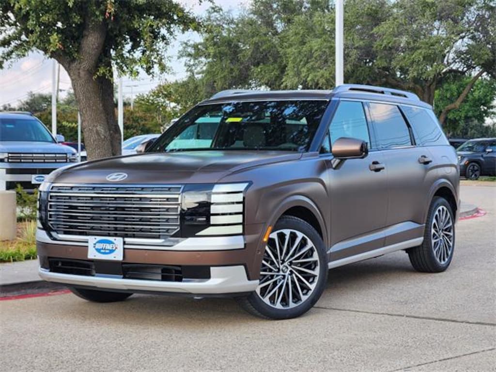 Earthy Brass Matte 2026 Hyundai Palisade Calligraphy 4D Sport Utility Calligraphy FWD 8-Speed Automatic V6 Option Group 01, 14 Speakers, 3rd row seats: split-bench, 4-Wheel Disc Brakes, ABS brakes, Air Conditioning, Alloy wheels, AM/FM radio: SiriusXM, Apple CarPlay & Android Auto, Audio memory, Auto High-beam Headlights, Auto-dimming door mirrors, Auto-dimming Rear-View mirror, Auto-leveling suspension, Automatic temperature control, Brake assist, Bumpers: body-color, Cargo Blocks, Cargo Cover, Cargo Net, Carpeted Floor Mats, Compass, Delay-off headlights, Driver door bin, Driver vanity mirror, Dual front impact airbags, Dual front side impact airbags, Electronic Stability Control, Emergency communication system: Bluelink+, Exterior Parking Camera Rear, First Aid Kit, Four wheel independent suspension, Front anti-roll bar, Front Bucket Seats, Front Center Armrest, Front dual zone A/C, Front reading lights, Fully automatic headlights, Garage door transmitter: HomeLink, Genuine wood console insert, Genuine wood dashboard insert, Heads-Up Display, Heated & Ventilated Front Bucket Seats, Heated door mirrors, Heated front seats, Heated rear seats, Heated steering wheel, HVAC memory, Illuminated entry, Knee airbag, Leather steering wheel, Low tire pressure warning, Memory seat, Navigation System, Occupant sensing airbag, Outside temperature display, Overhead airbag, Overhead console, Panic alarm, Passenger door bin, Passenger vanity mirror, Power door mirrors, Power driver seat, Power Liftgate, Power moonroof, Power passenger seat, Power steering, Power windows, Premium Nappa Leather Seat Trim, Radio data system, Radio: Infotainment Navigation System, Rain sensing wipers, Rear air conditioning, Rear anti-roll bar, Rear audio controls, Rear reading lights, Rear side impact airbag, Rear window defroster, Rear window wiper, Reclining 3rd row seat, Remote keyless entry, Roadside Assistance Kit, Security system, Speed control, Split folding rear seat, Spoiler, Steering wheel mounted audio controls, Tachometer, Telescoping steering wheel, Tilt steering wheel, Traction control, Trip computer, Turn signal indicator mirrors, Variably intermittent wipers, Ventilated front seats, Ventilated rear seats, and Wheels: 21" x 8.5J Alloy. Price includes: $1250 - Hyundai HMF Dealer Choice : $1250 discount and 5.99% APR for 24 months. $44.32 per $1000 financed. Available to well qualified buyers who finance through Hyundai Motor Finance. H704. Exp. 11/03/2025