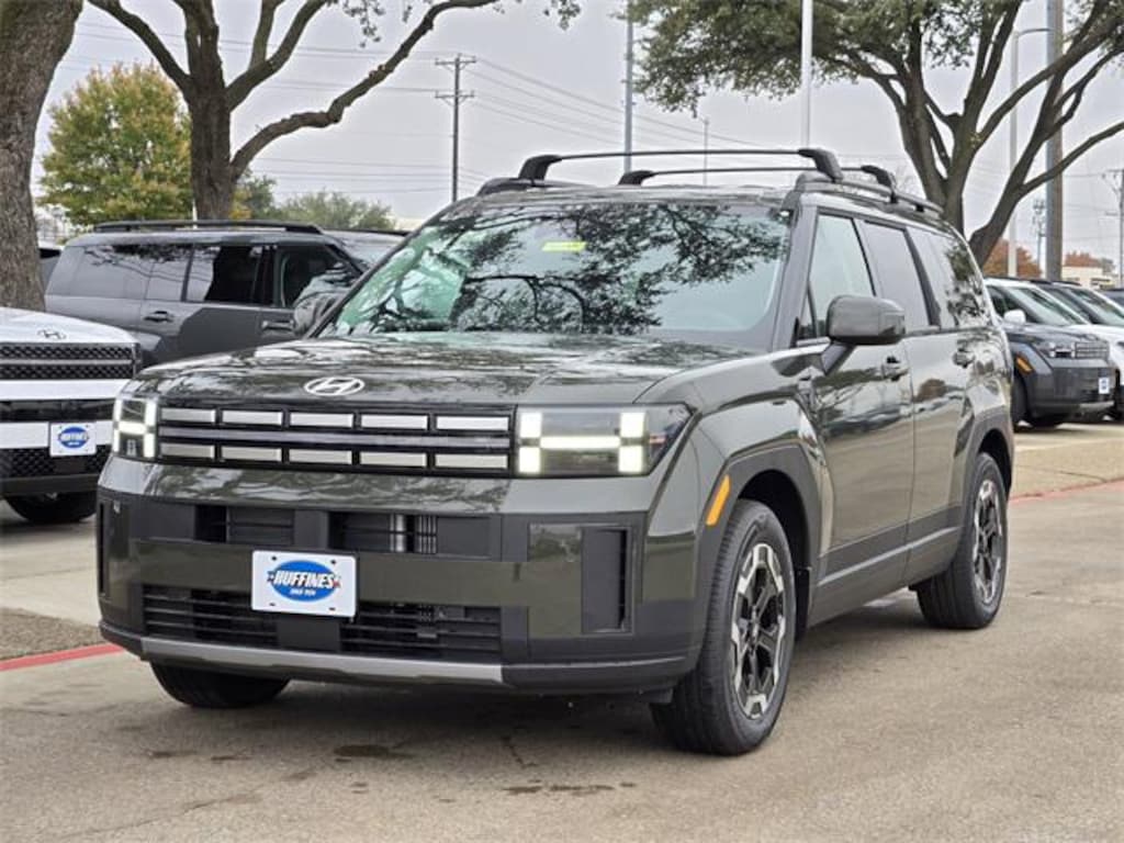 Green 2026 Hyundai Santa Fe SEL 4D Sport Utility SEL FWD 8-Speed Automatic with SHIFTRONIC 2.5L I4 Option Group 01, 18" x 7.5J Alloy Wheels, 3rd row seats: bench, 4-Wheel Disc Brakes, 6 Speakers, ABS brakes, Air Conditioning, Alloy wheels, AM/FM radio: SiriusXM, Apple CarPlay & Android Auto, Auto High-beam Headlights, Automatic temperature control, Brake assist, Bumpers: body-color, Cargo Blocks, Cargo Net, Cargo Tray, Carpeted Floor Mats, Delay-off headlights, Driver door bin, Driver vanity mirror, Dual front impact airbags, Dual front side impact airbags, Electronic Stability Control, Emergency communication system, Exterior Parking Camera Rear, First Aid Kit, Four wheel independent suspension, Front anti-roll bar, Front Bucket Seats, Front Center Armrest, Front dual zone A/C, Front reading lights, Fully automatic headlights, H-Tex Leatherette Seat Trim, Heated door mirrors, Heated Front Bucket Seats, Heated front seats, Illuminated entry, Knee airbag, Leather steering wheel, Low tire pressure warning, Mudguards, Occupant sensing airbag, Outside temperature display, Overhead airbag, Overhead console, Panic alarm, Passenger door bin, Passenger vanity mirror, Power door mirrors, Power driver seat, Power Liftgate, Power steering, Power windows, Radio: AM/FM/HD Display Audio, Rear anti-roll bar, Rear seat center armrest, Rear side impact airbag, Rear window defroster, Rear window wiper, Remote keyless entry, Roof Rack Crossbars, Security system, Severe Weather Kit, Speed control, Speed-sensing steering, Split folding rear seat, Spoiler, Steering wheel mounted audio controls, Tachometer, Telescoping steering wheel, Tilt steering wheel, Traction control, Trip computer, Turn signal indicator mirrors, and Variably intermittent wipers. Price includes: $1500 - Hyundai HMF Dealer Choice : $1500 discount and 5.39% APR for 24 months. $44.05 per $1000 financed. Available to well qualified buyers who finance through Hyundai Motor Finance. H704. Exp. 02/02/2026