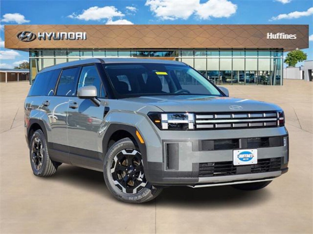 Gray 2026 Hyundai Santa Fe SE 4D Sport Utility SE FWD 8-Speed Automatic with SHIFTRONIC 2.5L I4 Option Group 01, 18" x 7.5J Alloy Wheels, 3rd row seats: bench, 4-Wheel Disc Brakes, 6 Speakers, ABS brakes, Air Conditioning, Alloy wheels, AM/FM radio: SiriusXM, Apple CarPlay & Android Auto, Auto High-beam Headlights, Brake assist, Bumpers: body-color, Cargo Blocks, Cargo Cover/Screen, Cargo Net, Cargo Tray, Carpeted Floor Mats, Delay-off headlights, Driver door bin, Driver vanity mirror, Dual front impact airbags, Dual front side impact airbags, Electronic Stability Control, Emergency communication system, Exterior Parking Camera Rear, First Aid Kit, Four wheel independent suspension, Front anti-roll bar, Front Bucket Seats, Front Center Armrest, Front reading lights, Fully automatic headlights, Heated door mirrors, Illuminated entry, Knee airbag, Leather steering wheel, Low tire pressure warning, Occupant sensing airbag, Outside temperature display, Overhead airbag, Overhead console, Panic alarm, Passenger door bin, Passenger vanity mirror, Power door mirrors, Power Liftgate, Power steering, Power windows, Radio: AM/FM/HD Display Audio, Rear anti-roll bar, Rear seat center armrest, Rear side impact airbag, Rear window defroster, Rear window wiper, Remote keyless entry, Security system, Speed control, Speed-sensing steering, Split folding rear seat, Spoiler, Steering wheel mounted audio controls, Tachometer, Telescoping steering wheel, Tilt steering wheel, Traction control, Trip computer, Variably intermittent wipers, and YES Essentials Stain-Resistant Cloth Seat Trim.