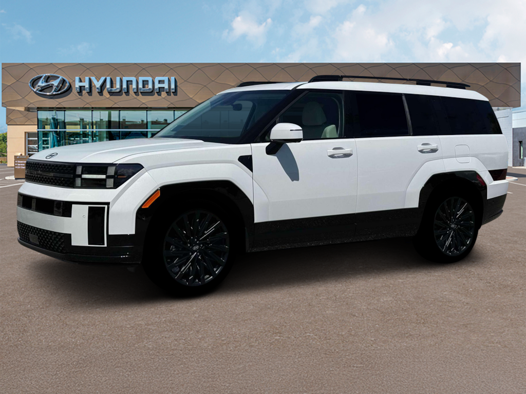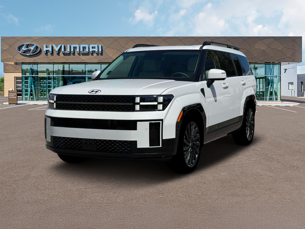 White 2026 Hyundai Santa Fe Calligraphy 4D Sport Utility Calligraphy FWD 8-Speed Automatic with SHIFTRONIC 2.5L I4 Option Group 01, 12 Speakers, 3rd row seats: bench, 4-Wheel Disc Brakes, ABS brakes, Air Conditioning, Alloy wheels, AM/FM radio: SiriusXM, Apple CarPlay & Android Auto, Auto High-beam Headlights, Auto-dimming Rear-View mirror, Automatic temperature control, Brake assist, Bumpers: body-color, Cargo Net, Carpeted Floor Mats, Delay-off headlights, Driver door bin, Driver vanity mirror, Dual front impact airbags, Dual front side impact airbags, Electronic Stability Control, Emergency communication system, Exterior Parking Camera Rear, Four wheel independent suspension, Front anti-roll bar, Front Bucket Seats, Front Center Armrest, Front dual zone A/C, Front reading lights, Fully automatic headlights, Garage door transmitter: HomeLink, Heads-Up Display, Heated & Ventilated Front Bucket Seats, Heated door mirrors, Heated front seats, Heated rear seats, Heated steering wheel, Illuminated entry, Knee airbag, Leather steering wheel, Low tire pressure warning, Memory seat, Navigation System, Occupant sensing airbag, Outside temperature display, Overhead airbag, Overhead console, Panic alarm, Passenger door bin, Passenger vanity mirror, Power door mirrors, Power driver seat, Power Liftgate, Power moonroof, Power passenger seat, Power steering, Power windows, Quilted Premium Nappa Leather Seat Trim, Radio: AM/FM/HD Bose Premium Audio System, Rain sensing wipers, Rear anti-roll bar, Rear side impact airbag, Rear window defroster, Rear window wiper, Remote keyless entry, Security system, Side Steps, Speed control, Speed-sensing steering, Split folding rear seat, Spoiler, Steering wheel mounted audio controls, Tachometer, Telescoping steering wheel, Tilt steering wheel, Traction control, Trip computer, Turn signal indicator mirrors, Variably intermittent wipers, Ventilated front seats, and Wheels: 21" x 8.5J Unique Dark Finish Alloy. Price includes: $2250 - Hyundai HMF Dealer Choice : $2250 discount and 5.99% APR for 24 months. $44.32 per $1000 financed. Available to well qualified buyers who finance through Hyundai Motor Finance. H704. Exp. 11/03/2025