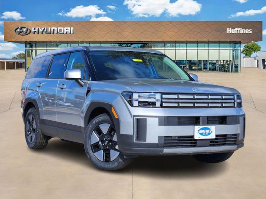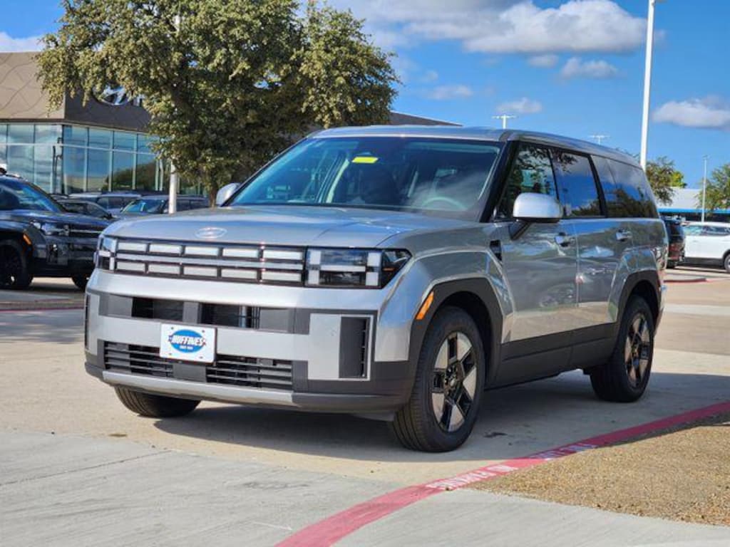 Shimmering Silver 2026 Hyundai Santa Fe Hybrid SE 4D Sport Utility SE FWD 6-Speed Automatic with Shiftronic I4 Option Group 01, 18" x 7.5J Alloy Wheels, 3rd row seats: bench, 4-Wheel Disc Brakes, 6 Speakers, ABS brakes, Air Conditioning, Alloy wheels, AM/FM radio: SiriusXM, Apple CarPlay & Android Auto, Auto High-beam Headlights, Automatic temperature control, Brake assist, Bumpers: body-color, Cargo Net, Cargo Organizer, Cargo Tray, Carpeted Floor Mats, Delay-off headlights, Driver door bin, Driver vanity mirror, Dual front impact airbags, Dual front side impact airbags, Electronic Stability Control, Emergency communication system, Exterior Parking Camera Rear, First Aid Kit, Four wheel independent suspension, Front anti-roll bar, Front Bucket Seats, Front Center Armrest, Front dual zone A/C, Front reading lights, Fully automatic headlights, Heated door mirrors, Illuminated entry, Knee airbag, Leather steering wheel, Low tire pressure warning, Occupant sensing airbag, Outside temperature display, Overhead airbag, Overhead console, Panic alarm, Passenger door bin, Passenger vanity mirror, Power door mirrors, Power Liftgate, Power steering, Power windows, Radio: AM/FM/HD Display Audio, Rear anti-roll bar, Rear seat center armrest, Rear side impact airbag, Rear window defroster, Rear window wiper, Remote keyless entry, Roadside Assistance Kit, Security system, Speed control, Speed-sensing steering, Split folding rear seat, Spoiler, Steering wheel mounted audio controls, Tachometer, Telescoping steering wheel, Tilt steering wheel, Traction control, Trip computer, Variably intermittent wipers, and YES Essentials Stain-Resistant Cloth Seat Trim.