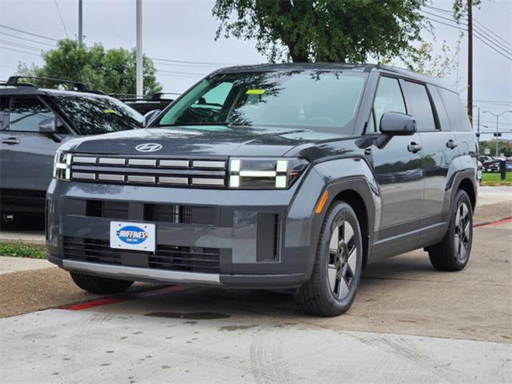 Gray 2026 Hyundai Santa Fe Hybrid 4D Sport Utility FWD 6-Speed Automatic with Shiftronic I4 Option Group 01, 18" x 7.5J Alloy Wheels, 3rd row seats: bench, 4-Wheel Disc Brakes, 6 Speakers, ABS brakes, Air Conditioning, Alloy wheels, AM/FM radio: SiriusXM, Apple CarPlay & Android Auto, Auto High-beam Headlights, Automatic temperature control, Brake assist, Bumpers: body-color, Cargo Blocks, Cargo Net, Cargo Tray, Carpeted Floor Mats, Delay-off headlights, Driver door bin, Driver vanity mirror, Dual front impact airbags, Dual front side impact airbags, Electronic Stability Control, Emergency communication system, Exterior Parking Camera Rear, First Aid Kit, Four wheel independent suspension, Front anti-roll bar, Front Bucket Seats, Front Center Armrest, Front dual zone A/C, Front reading lights, Fully automatic headlights, Heated door mirrors, Illuminated entry, Knee airbag, Leather steering wheel, Low tire pressure warning, Mudguards, Occupant sensing airbag, Outside temperature display, Overhead airbag, Overhead console, Panic alarm, Passenger door bin, Passenger vanity mirror, Power door mirrors, Power Liftgate, Power steering, Power windows, Radio: AM/FM/HD Display Audio, Rear anti-roll bar, Rear seat center armrest, Rear side impact airbag, Rear window defroster, Rear window wiper, Remote keyless entry, Security system, Speed control, Speed-sensing steering, Split folding rear seat, Spoiler, Steering wheel mounted audio controls, Tachometer, Telescoping steering wheel, Tilt steering wheel, Traction control, Trip computer, Variably intermittent wipers, and YES Essentials Stain-Resistant Cloth Seat Trim. Price includes: $3000 - Hyundai HMF Dealer Choice : $3000 discount and 5.99% APR for 24 months. $44.32 per $1000 financed. Available to well qualified buyers who finance through Hyundai Motor Finance. H704. Exp. 11/03/2025