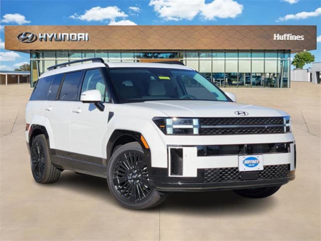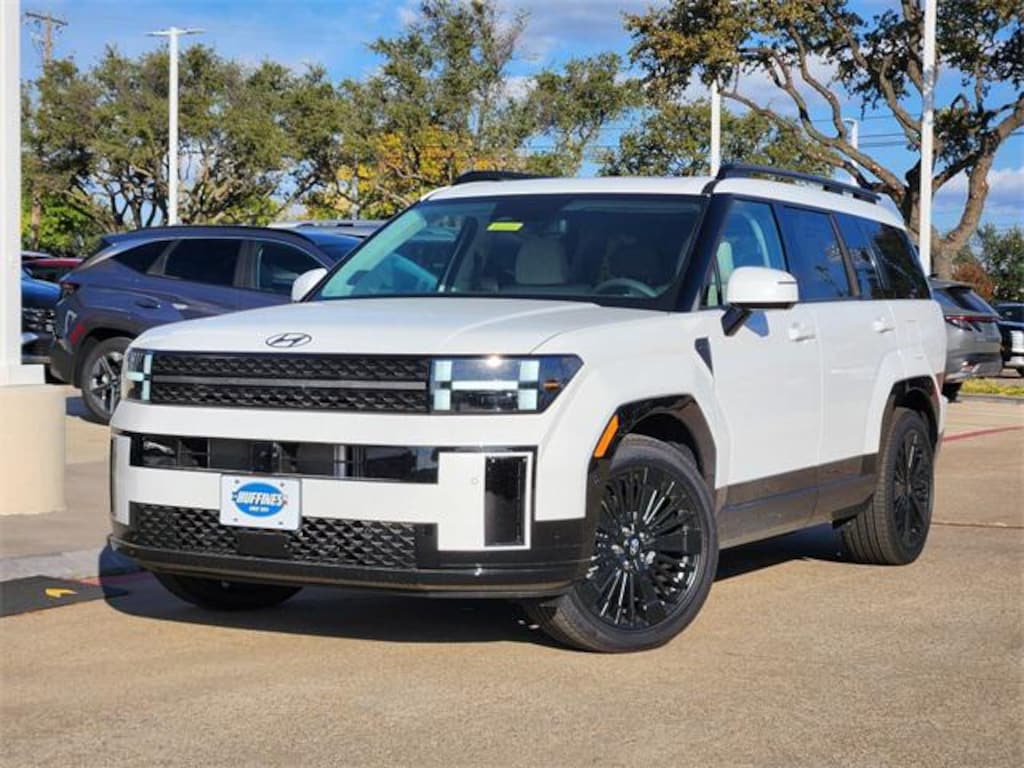 White 2026 Hyundai Santa Fe Hybrid Calligraphy 4D Sport Utility Calligraphy AWD 6-Speed Automatic with Shiftronic I4 Option Group 01, 12 Speakers, 3rd row seats: bench, 4-Wheel Disc Brakes, ABS brakes, Air Conditioning, Alloy wheels, AM/FM radio: SiriusXM, Apple CarPlay & Android Auto, Auto High-beam Headlights, Auto-dimming Rear-View mirror, Automatic temperature control, Brake assist, Bumpers: body-color, Cargo Blocks, Cargo Net, Cargo Tray, Carpeted Floor Mats, Delay-off headlights, Driver door bin, Driver vanity mirror, Dual front impact airbags, Dual front side impact airbags, Electronic Stability Control, Emergency communication system, Exterior Parking Camera Rear, First Aid Kit, Four wheel independent suspension, Front anti-roll bar, Front Bucket Seats, Front Center Armrest, Front dual zone A/C, Front reading lights, Fully automatic headlights, Garage door transmitter: HomeLink, Heads-Up Display, Heated & Ventilated Front Bucket Seats, Heated door mirrors, Heated front seats, Heated rear seats, Heated steering wheel, Illuminated entry, Knee airbag, Leather steering wheel, Low tire pressure warning, Memory seat, Navigation System, Occupant sensing airbag, Outside temperature display, Overhead airbag, Overhead console, Panic alarm, Passenger door bin, Passenger vanity mirror, Power door mirrors, Power driver seat, Power Liftgate, Power moonroof, Power passenger seat, Power steering, Power windows, Quilted Premium Nappa Leather Seat Trim, Radio: AM/FM/HD Bose Premium Audio System, Rain sensing wipers, Rear anti-roll bar, Rear side impact airbag, Rear window defroster, Rear window wiper, Remote keyless entry, Security system, Speed control, Speed-sensing steering, Split folding rear seat, Spoiler, Steering wheel mounted audio controls, Tachometer, Telescoping steering wheel, Tilt steering wheel, Tow Hitch, Traction control, Trip computer, Turn signal indicator mirrors, Variably intermittent wipers, Ventilated front seats, and Wheels: 20" x 8.5J Unique Dark Finish Alloy. Price includes: $4250 - Hyundai HMF Dealer Choice : $4250 discount and 5.49% APR for 24 months. $44.09 per $1000 financed. Available to well qualified buyers who finance through Hyundai Motor Finance. H704. Exp. 12/01/2025
