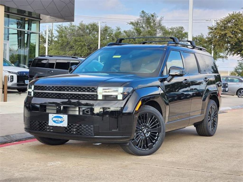 Phantom Black 2026 Hyundai Santa Fe Hybrid Calligraphy 4D Sport Utility Calligraphy FWD 6-Speed Automatic with Shiftronic I4 Option Group 01, 12 Speakers, 3rd row seats: bench, 4-Wheel Disc Brakes, ABS brakes, Air Conditioning, Alloy wheels, AM/FM radio: SiriusXM, Apple CarPlay & Android Auto, Auto High-beam Headlights, Auto-dimming Rear-View mirror, Automatic temperature control, Brake assist, Bumpers: body-color, Cargo Cover/Screen, Cargo Net, Cargo Tray, Carpeted Floor Mats, Delay-off headlights, Driver door bin, Driver vanity mirror, Dual front impact airbags, Dual front side impact airbags, Electronic Stability Control, Emergency communication system, Exterior Parking Camera Rear, First Aid Kit, Four wheel independent suspension, Front anti-roll bar, Front Bucket Seats, Front Center Armrest, Front dual zone A/C, Front reading lights, Fully automatic headlights, Garage door transmitter: HomeLink, Heads-Up Display, Heated & Ventilated Front Bucket Seats, Heated door mirrors, Heated front seats, Heated rear seats, Heated steering wheel, Illuminated entry, Knee airbag, Leather steering wheel, Low tire pressure warning, Memory seat, Navigation System, Occupant sensing airbag, Outside temperature display, Overhead airbag, Overhead console, Panic alarm, Passenger door bin, Passenger vanity mirror, Power door mirrors, Power driver seat, Power Liftgate, Power moonroof, Power passenger seat, Power steering, Power windows, Quilted Premium Nappa Leather Seat Trim, Radio: AM/FM/HD Bose Premium Audio System, Rain sensing wipers, Rear anti-roll bar, Rear side impact airbag, Rear window defroster, Rear window wiper, Remote keyless entry, Roof Rack Crossbars, Security system, Speed control, Speed-sensing steering, Split folding rear seat, Spoiler, Steering wheel mounted audio controls, Tachometer, Telescoping steering wheel, Tilt steering wheel, Traction control, Trip computer, Turn signal indicator mirrors, Variably intermittent wipers, Ventilated front seats, and Wheels: 20" x 8.5J Unique Dark Finish Alloy. Price includes: $4250 - Hyundai HMF Dealer Choice : $4250 discount and 5.49% APR for 24 months. $44.09 per $1000 financed. Available to well qualified buyers who finance through Hyundai Motor Finance. H704. Exp. 12/01/2025