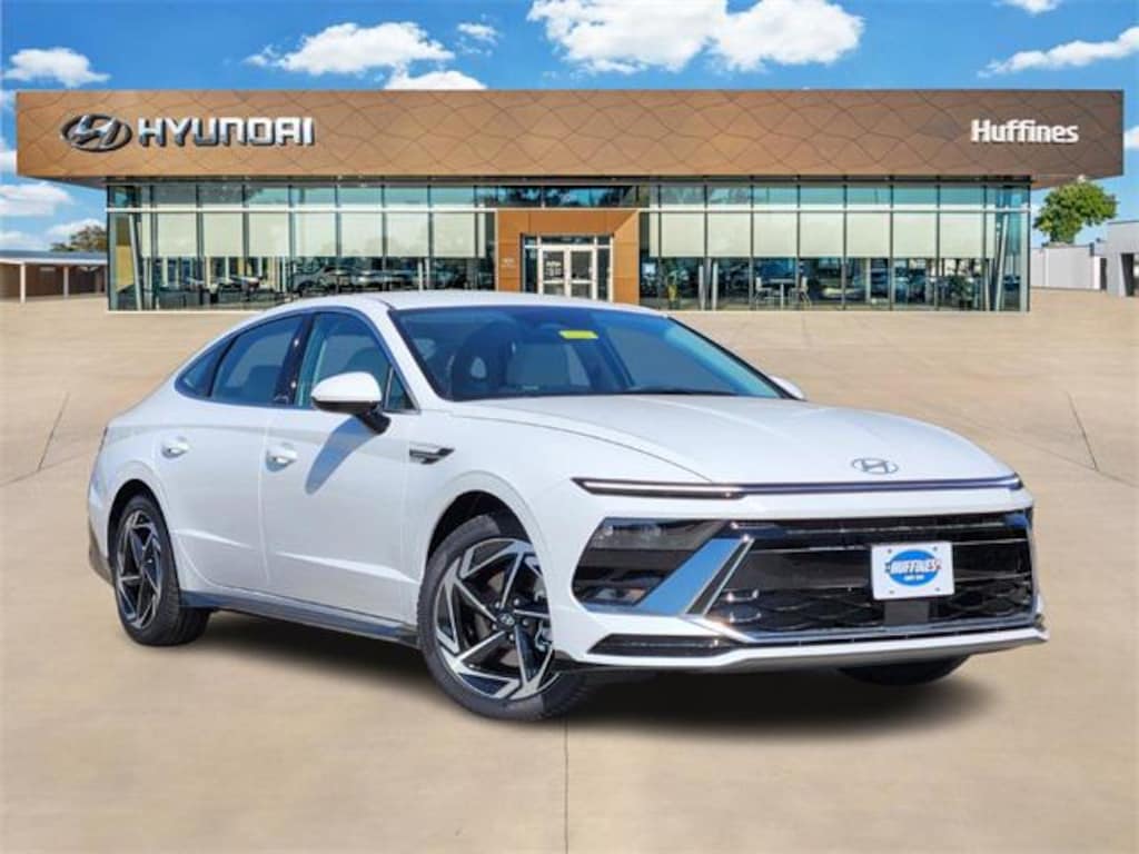 White 2026 Hyundai Sonata SEL Sport 4D Sedan SEL Sport FWD 8-Speed Automatic I4 Option Group 01, 18" x 7.5J Aluminum Alloy Wheels, 4-Wheel Disc Brakes, 6 Speakers, ABS brakes, Air Conditioning, Alloy wheels, AM/FM radio: SiriusXM, Apple CarPlay & Android Auto, Auto High-beam Headlights, Automatic temperature control, Brake assist, Bumpers: body-color, Delay-off headlights, Driver door bin, Driver vanity mirror, Dual front impact airbags, Dual front side impact airbags, Electronic Stability Control, Emergency communication system: Bluelink+, Exterior Parking Camera Rear, Four wheel independent suspension, Front anti-roll bar, Front Bucket Seats, Front Center Armrest, Front dual zone A/C, Front reading lights, Fully automatic headlights, Heated door mirrors, Heated Front Bucket Seats, Heated front seats, Illuminated entry, Knee airbag, Leather steering wheel, Low tire pressure warning, Occupant sensing airbag, Outside temperature display, Overhead airbag, Overhead console, Panic alarm, Passenger door bin, Passenger vanity mirror, Power door mirrors, Power driver seat, Power steering, Power windows, Premium Cloth Seating Surfaces, Radio data system, Radio: AM/FM/HD/MP3/SiriusXM, Rear anti-roll bar, Rear seat center armrest, Rear side impact airbag, Rear window defroster, Remote keyless entry, Security system, Speed control, Speed-sensing steering, Speed-Sensitive Wipers, Split folding rear seat, Steering wheel mounted audio controls, Tachometer, Telescoping steering wheel, Tilt steering wheel, Traction control, Trip computer, and Variably intermittent wipers.