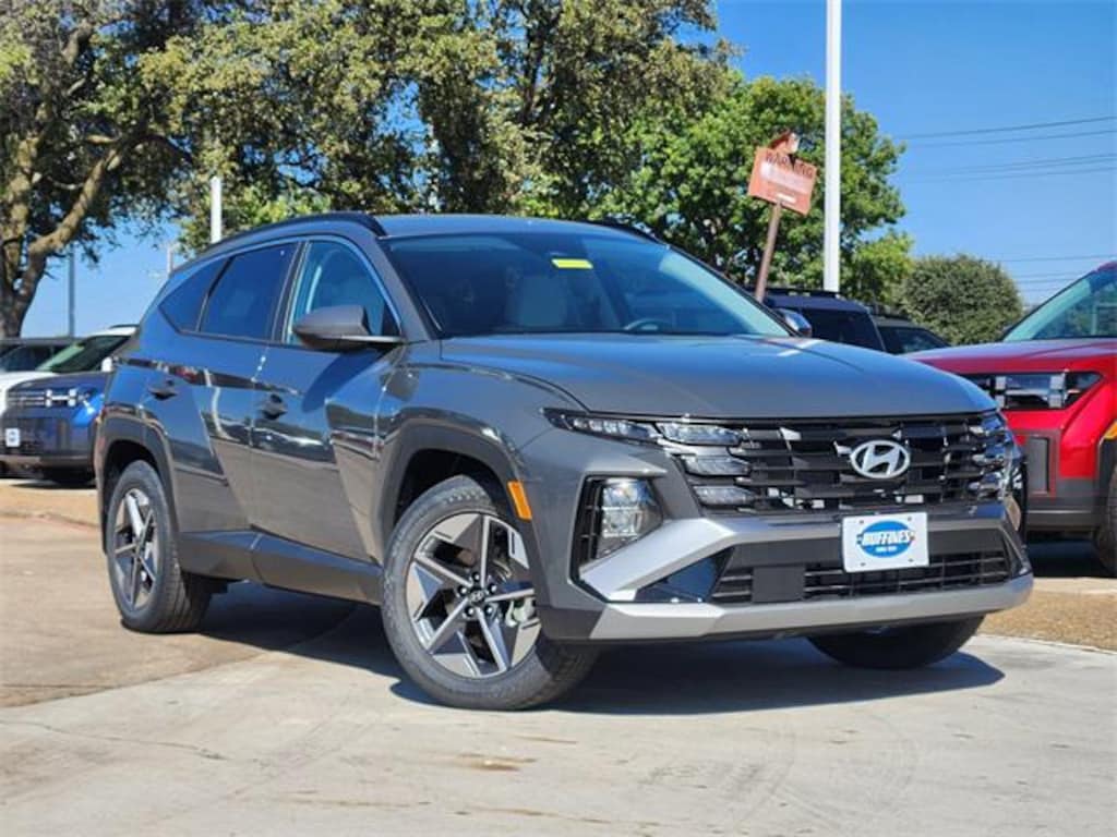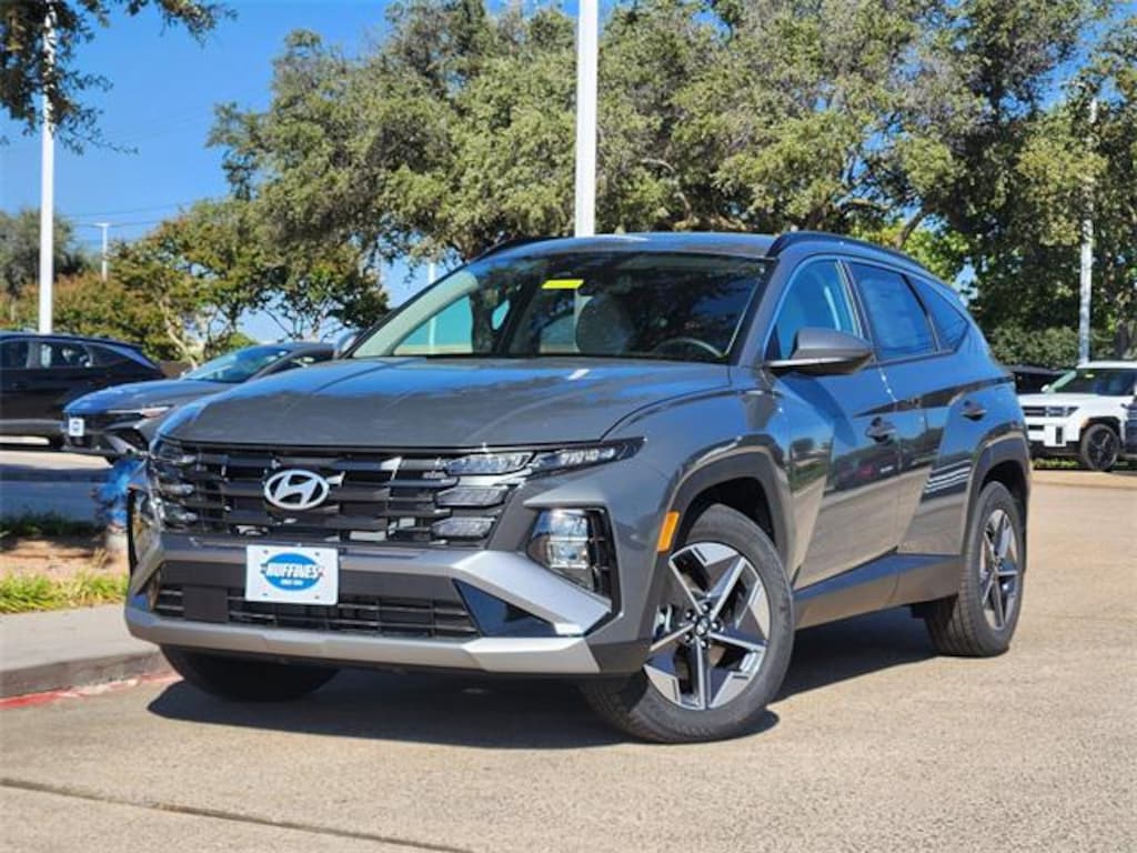 Gray 2026 Hyundai Tucson SEL 4D Sport Utility SEL FWD 8-Speed Automatic with SHIFTRONIC 2.5L I4 DGI DOHC 16V LEV3-SULEV30 187hp Option Group 01, 18" x 7.5J Alloy Wheels, 4-Wheel Disc Brakes, 6 Speakers, ABS brakes, Air Conditioning, All Season Fitted Liners, Alloy wheels, AM/FM radio: SiriusXM, Apple CarPlay & Android Auto, Auto High-beam Headlights, Automatic temperature control, Brake assist, Bumpers: body-color, Cargo Blocks, Cargo Cover, Cargo Net, Cargo Tray, Carpeted Floor Mats, Delay-off headlights, Driver door bin, Driver vanity mirror, Dual front impact airbags, Dual front side impact airbags, Electronic Stability Control, Emergency communication system: Bluelink+, First Aid Kit, Four wheel independent suspension, Front and Rear Mudguards, Front anti-roll bar, Front Bucket Seats, Front Center Armrest, Front dual zone A/C, Front reading lights, Fully automatic headlights, H-Tex Leatherette Seat Trim, Heated door mirrors, Heated Front Bucket Seats, Heated front seats, Illuminated entry, Low tire pressure warning, Occupant sensing airbag, Outside temperature display, Overhead airbag, Overhead console, Panic alarm, Passenger door bin, Passenger vanity mirror, Power door mirrors, Power driver seat, Power Liftgate, Power steering, Power windows, Radio data system, Radio: AM/FM/HD Audio System, Rear anti-roll bar, Rear reading lights, Rear seat center armrest, Rear side impact airbag, Rear window defroster, Rear window wiper, Remote keyless entry, Security system, Speed control, Split folding rear seat, Spoiler, Steering wheel mounted audio controls, Tachometer, Telescoping steering wheel, Tilt steering wheel, Traction control, Trip computer, and Variably intermittent wipers.