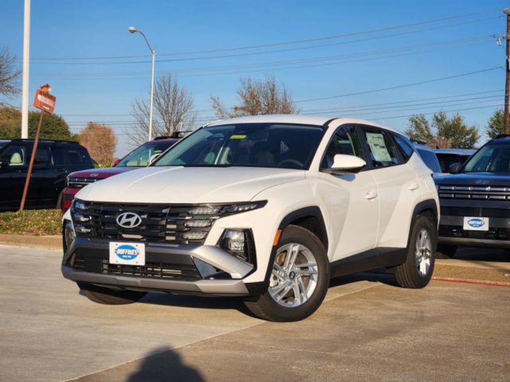 White Pearl 2026 Hyundai Tucson SE 4D Sport Utility SE FWD 8-Speed Automatic with SHIFTRONIC 2.5L I4 DGI DOHC 16V LEV3-SULEV30 187hp Option Group 01, 17" x 7.0J Alloy Wheels, 4-Wheel Disc Brakes, 6 Speakers, ABS brakes, Air Conditioning, All Season Fitted Liners, Alloy wheels, AM/FM radio: SiriusXM, Apple CarPlay & Android Auto, Auto High-beam Headlights, Brake assist, Bumpers: body-color, Cargo Net, Carpeted Floor Mats, Cloth Seat Trim, Delay-off headlights, Driver door bin, Driver vanity mirror, Dual front impact airbags, Dual front side impact airbags, Electronic Stability Control, Emergency communication system: None, First Aid Kit, Four wheel independent suspension, Front anti-roll bar, Front Bucket Seats, Front Center Armrest, Front reading lights, Fully automatic headlights, Illuminated entry, Low tire pressure warning, Occupant sensing airbag, Outside temperature display, Overhead airbag, Overhead console, Panic alarm, Passenger door bin, Passenger vanity mirror, Power door mirrors, Power steering, Power windows, Radio data system, Radio: AM/FM/HD Audio System, Rear anti-roll bar, Rear reading lights, Rear seat center armrest, Rear side impact airbag, Rear window defroster, Rear window wiper, Remote keyless entry, Security system, Speed control, Split folding rear seat, Spoiler, Steering wheel mounted audio controls, Tachometer, Telescoping steering wheel, Tilt steering wheel, Traction control, Trip computer, and Variably intermittent wipers.