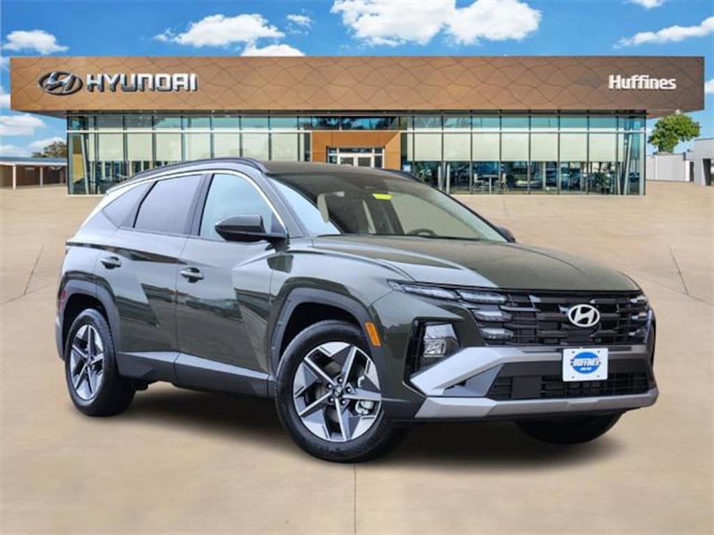 Green 2026 Hyundai Tucson SEL 4D Sport Utility SEL FWD 8-Speed Automatic with SHIFTRONIC 2.5L I4 DGI DOHC 16V LEV3-SULEV30 187hp Option Group 01, 18" x 7.5J Alloy Wheels, 4-Wheel Disc Brakes, 6 Speakers, ABS brakes, Air Conditioning, Alloy wheels, AM/FM radio: SiriusXM, Apple CarPlay & Android Auto, Auto High-beam Headlights, Automatic temperature control, Brake assist, Bumpers: body-color, Cargo Net, Carpeted Floor Mats, Delay-off headlights, Driver door bin, Driver vanity mirror, Dual front impact airbags, Dual front side impact airbags, Electronic Stability Control, Emergency communication system: Bluelink+, First Aid Kit, Four wheel independent suspension, Front anti-roll bar, Front Bucket Seats, Front Center Armrest, Front dual zone A/C, Front reading lights, Fully automatic headlights, H-Tex Leatherette Seat Trim, Heated door mirrors, Heated Front Bucket Seats, Heated front seats, Illuminated entry, Low tire pressure warning, Occupant sensing airbag, Outside temperature display, Overhead airbag, Overhead console, Panic alarm, Passenger door bin, Passenger vanity mirror, Power door mirrors, Power driver seat, Power Liftgate, Power steering, Power windows, Radio data system, Radio: AM/FM/HD Audio System, Rear anti-roll bar, Rear reading lights, Rear seat center armrest, Rear side impact airbag, Rear window defroster, Rear window wiper, Remote keyless entry, Security system, Speed control, Split folding rear seat, Spoiler, Steering wheel mounted audio controls, Tachometer, Telescoping steering wheel, Tilt steering wheel, Tow Hitch, Traction control, Trip computer, and Variably intermittent wipers.