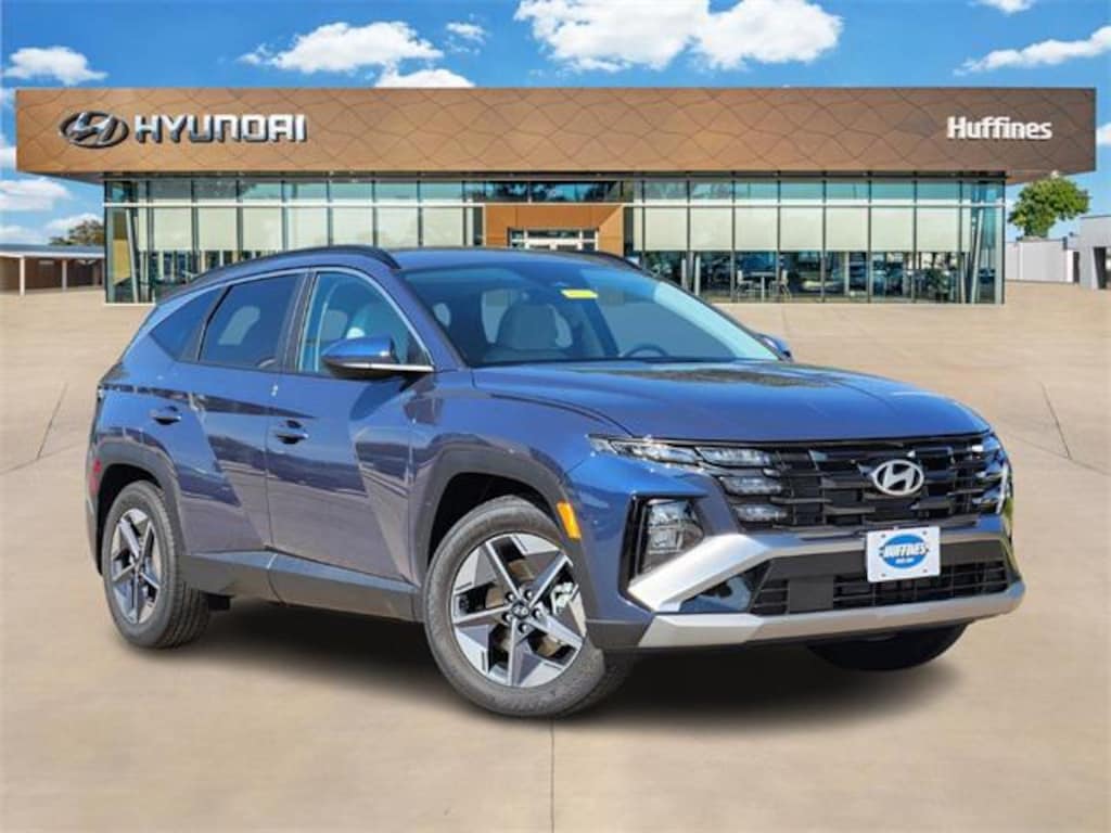 Blue 2026 Hyundai Tucson SEL 4D Sport Utility SEL FWD 8-Speed Automatic with SHIFTRONIC 2.5L I4 DGI DOHC 16V LEV3-SULEV30 187hp Option Group 01, 18" x 7.5J Alloy Wheels, 4-Wheel Disc Brakes, 6 Speakers, ABS brakes, Air Conditioning, All Season Fitted Liners, Alloy wheels, AM/FM radio: SiriusXM, Apple CarPlay & Android Auto, Auto High-beam Headlights, Automatic temperature control, Brake assist, Bumpers: body-color, Cargo Blocks, Cargo Cover, Cargo Net, Cargo Tray, Carpeted Floor Mats, Delay-off headlights, Driver door bin, Driver vanity mirror, Dual front impact airbags, Dual front side impact airbags, Electronic Stability Control, Emergency communication system: Bluelink+, First Aid Kit, Four wheel independent suspension, Front and Rear Mudguards, Front anti-roll bar, Front Bucket Seats, Front Center Armrest, Front dual zone A/C, Front reading lights, Fully automatic headlights, H-Tex Leatherette Seat Trim, Heated door mirrors, Heated Front Bucket Seats, Heated front seats, Illuminated entry, Low tire pressure warning, Occupant sensing airbag, Outside temperature display, Overhead airbag, Overhead console, Panic alarm, Passenger door bin, Passenger vanity mirror, Power door mirrors, Power driver seat, Power Liftgate, Power steering, Power windows, Radio data system, Radio: AM/FM/HD Audio System, Rear anti-roll bar, Rear reading lights, Rear seat center armrest, Rear side impact airbag, Rear window defroster, Rear window wiper, Remote keyless entry, Security system, Speed control, Split folding rear seat, Spoiler, Steering wheel mounted audio controls, Tachometer, Telescoping steering wheel, Tilt steering wheel, Traction control, Trip computer, and Variably intermittent wipers.