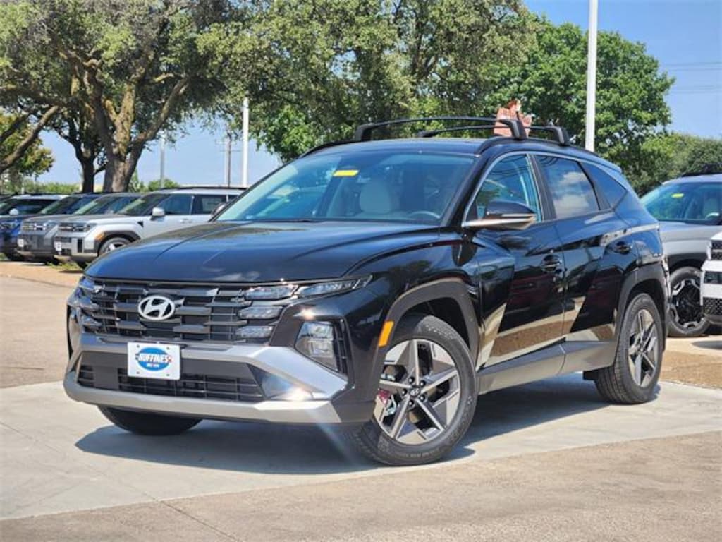 Phantom Black 2026 Hyundai Tucson SEL 4D Sport Utility SEL FWD 8-Speed Automatic with SHIFTRONIC 2.5L I4 DGI DOHC 16V LEV3-SULEV30 187hp Option Group 01, 18" x 7.5J Alloy Wheels, 4-Wheel Disc Brakes, 6 Speakers, ABS brakes, Air Conditioning, Alloy wheels, AM/FM radio: SiriusXM, Apple CarPlay & Android Auto, Auto High-beam Headlights, Auto-dimming Rear-View mirror, Automatic temperature control, Brake assist, Bumpers: body-color, Cargo Blocks, Cargo Cover, Cargo Net, Cargo Tray, Carpeted Floor Mats, Delay-off headlights, Driver door bin, Driver vanity mirror, Dual front impact airbags, Dual front side impact airbags, Electronic Stability Control, Emergency communication system: Bluelink+, First Aid Kit, Four wheel independent suspension, Front and Rear Mudguards, Front anti-roll bar, Front Bucket Seats, Front Center Armrest, Front dual zone A/C, Front reading lights, Fully automatic headlights, H-Tex Leatherette Seat Trim, Heated door mirrors, Heated Front Bucket Seats, Heated front seats, Illuminated entry, Leather Shift Knob, Leather steering wheel, Low tire pressure warning, Navigation System, Occupant sensing airbag, Outside temperature display, Overhead airbag, Overhead console, Panic alarm, Passenger door bin, Passenger vanity mirror, Power door mirrors, Power driver seat, Power Liftgate, Power moonroof, Power steering, Power windows, Radio data system, Radio: AM/FM/HD Audio System, Rear anti-roll bar, Rear reading lights, Rear seat center armrest, Rear side impact airbag, Rear window defroster, Rear window wiper, Remote keyless entry, Roof Rack Cross Rails, Security system, Speed control, Split folding rear seat, Spoiler, Steering wheel mounted audio controls, Tachometer, Telescoping steering wheel, Tilt steering wheel, Traction control, Trip computer, Turn signal indicator mirrors, and Variably intermittent wipers.