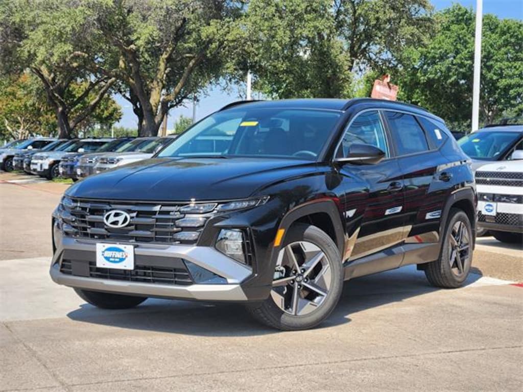 Phantom Black 2026 Hyundai Tucson SEL 4D Sport Utility SEL FWD 8-Speed Automatic with SHIFTRONIC 2.5L I4 DGI DOHC 16V LEV3-SULEV30 187hp Option Group 01, 18" x 7.5J Alloy Wheels, 4-Wheel Disc Brakes, 6 Speakers, ABS brakes, Air Conditioning, All Season Fitted Liners, Alloy wheels, AM/FM radio: SiriusXM, Apple CarPlay & Android Auto, Auto High-beam Headlights, Automatic temperature control, Brake assist, Bumpers: body-color, Cargo Cover, Cargo Net, Cargo Tray, Carpeted Floor Mats, Delay-off headlights, Driver door bin, Driver vanity mirror, Dual front impact airbags, Dual front side impact airbags, Electronic Stability Control, Emergency communication system: Bluelink+, First Aid Kit, Four wheel independent suspension, Front and Rear Mudguards, Front anti-roll bar, Front Bucket Seats, Front Center Armrest, Front dual zone A/C, Front reading lights, Fully automatic headlights, H-Tex Leatherette Seat Trim, Heated door mirrors, Heated Front Bucket Seats, Heated front seats, Illuminated entry, Low tire pressure warning, Occupant sensing airbag, Outside temperature display, Overhead airbag, Overhead console, Panic alarm, Passenger door bin, Passenger vanity mirror, Power door mirrors, Power driver seat, Power Liftgate, Power steering, Power windows, Radio data system, Radio: AM/FM/HD Audio System, Rear anti-roll bar, Rear reading lights, Rear seat center armrest, Rear side impact airbag, Rear window defroster, Rear window wiper, Remote keyless entry, Security system, Speed control, Split folding rear seat, Spoiler, Steering wheel mounted audio controls, Tachometer, Telescoping steering wheel, Tilt steering wheel, Traction control, Trip computer, and Variably intermittent wipers.