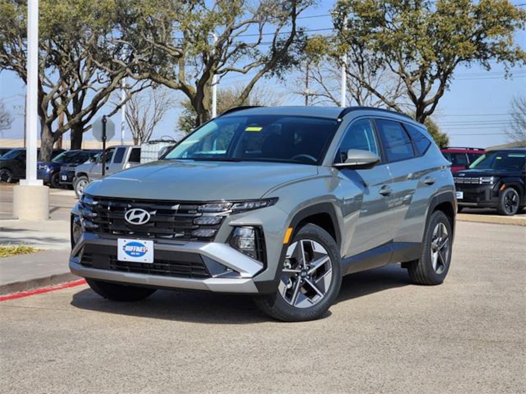 Gray 2026 Hyundai Tucson SEL 4D Sport Utility SEL FWD 8-Speed Automatic with SHIFTRONIC 2.5L I4 DGI DOHC 16V LEV3-SULEV30 187hp Option Group 01, 18" x 7.5J Alloy Wheels, 4-Wheel Disc Brakes, 6 Speakers, ABS brakes, Air Conditioning, Alloy wheels, AM/FM radio: SiriusXM, Apple CarPlay & Android Auto, Auto High-beam Headlights, Automatic temperature control, Brake assist, Bumpers: body-color, Cargo Net, Cargo Organizer, Cargo Tray, Carpeted Floor Mats, Cloth Seat Trim, Delay-off headlights, Driver door bin, Driver vanity mirror, Dual front impact airbags, Dual front side impact airbags, Electronic Stability Control, Emergency communication system: None, First Aid Kit, Four wheel independent suspension, Front anti-roll bar, Front Bucket Seats, Front Center Armrest, Front dual zone A/C, Front reading lights, Fully automatic headlights, Heated door mirrors, Heated Front Bucket Seats, Heated front seats, Illuminated entry, Low tire pressure warning, Occupant sensing airbag, Outside temperature display, Overhead airbag, Overhead console, Panic alarm, Passenger door bin, Passenger vanity mirror, Power door mirrors, Power driver seat, Power Liftgate, Power steering, Power windows, Radio data system, Radio: AM/FM/HD Audio System, Rear anti-roll bar, Rear reading lights, Rear seat center armrest, Rear side impact airbag, Rear window defroster, Rear window wiper, Remote keyless entry, Security system, Severe Weather Kit, Speed control, Split folding rear seat, Spoiler, Steering wheel mounted audio controls, Tachometer, Telescoping steering wheel, Tilt steering wheel, Traction control, Trip computer, and Variably intermittent wipers.