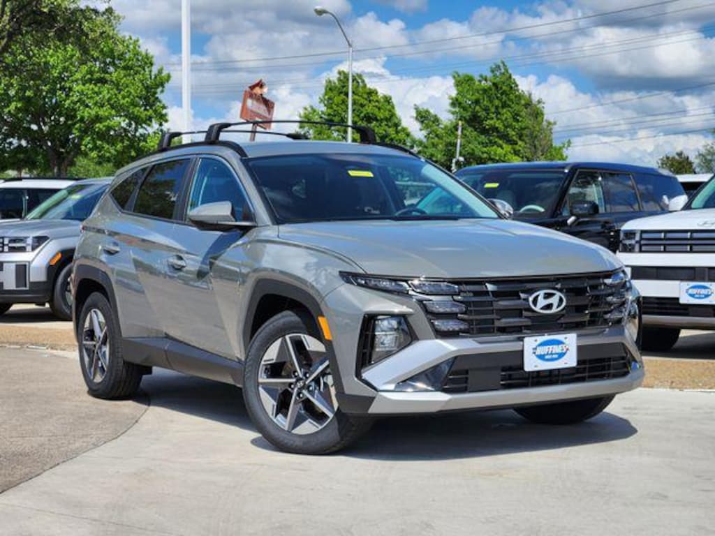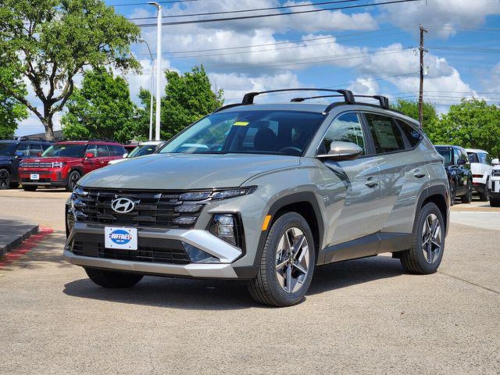 Gray 2026 Hyundai Tucson SEL 4D Sport Utility SEL FWD 8-Speed Automatic with SHIFTRONIC 2.5L I4 DGI DOHC 16V LEV3-SULEV30 187hp Option Group 01, 18" x 7.5J Alloy Wheels, 4-Wheel Disc Brakes, 6 Speakers, ABS brakes, Air Conditioning, Alloy wheels, AM/FM radio: SiriusXM, Apple CarPlay & Android Auto, Auto High-beam Headlights, Automatic temperature control, Brake assist, Bumpers: body-color, Cargo Net, Carpeted Floor Mats, Cloth Seat Trim, Cross Rails, Delay-off headlights, Driver door bin, Driver vanity mirror, Dual front impact airbags, Dual front side impact airbags, Electronic Stability Control, Emergency communication system: None, First Aid Kit, Four wheel independent suspension, Front anti-roll bar, Front Bucket Seats, Front Center Armrest, Front dual zone A/C, Front reading lights, Fully automatic headlights, Heated door mirrors, Heated Front Bucket Seats, Heated front seats, Illuminated entry, Low tire pressure warning, Occupant sensing airbag, Outside temperature display, Overhead airbag, Overhead console, Panic alarm, Passenger door bin, Passenger vanity mirror, Power door mirrors, Power driver seat, Power Liftgate, Power steering, Power windows, Radio data system, Radio: AM/FM/HD Audio System, Rear anti-roll bar, Rear reading lights, Rear seat center armrest, Rear side impact airbag, Rear window defroster, Rear window wiper, Remote keyless entry, Roadside Assistance Kit, Security system, Speed control, Split folding rear seat, Spoiler, Steering wheel mounted audio controls, Tachometer, Telescoping steering wheel, Tilt steering wheel, Traction control, Trip computer, and Variably intermittent wipers.