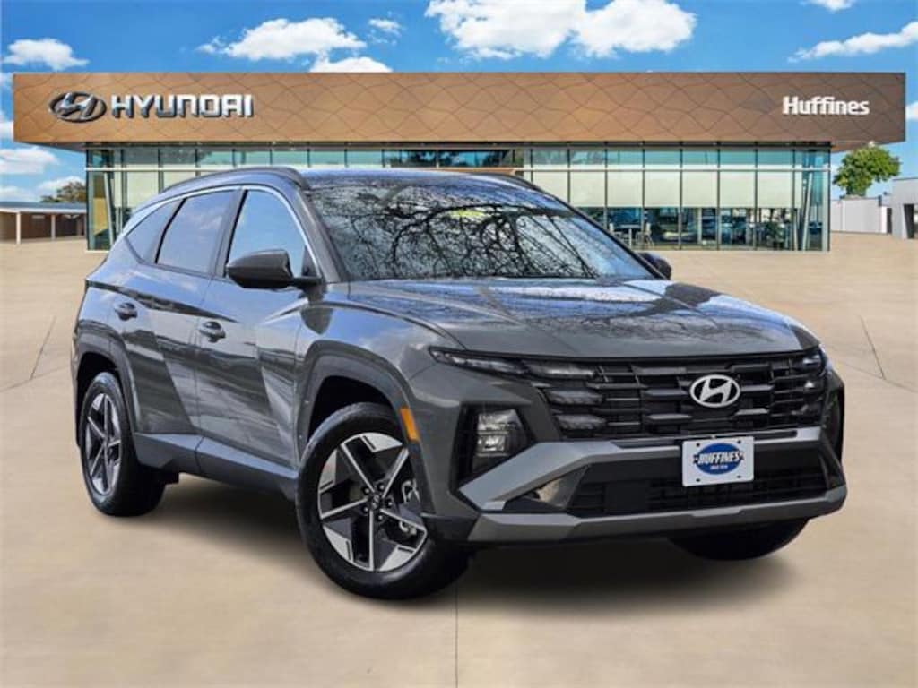 Gray 2026 Hyundai Tucson SEL 4D Sport Utility SEL FWD 8-Speed Automatic with SHIFTRONIC 2.5L I4 DGI DOHC 16V LEV3-SULEV30 187hp Option Group 01, 18" x 7.5J Alloy Wheels, 4-Wheel Disc Brakes, 6 Speakers, ABS brakes, Air Conditioning, Alloy wheels, AM/FM radio: SiriusXM, Apple CarPlay & Android Auto, Auto High-beam Headlights, Automatic temperature control, Brake assist, Bumpers: body-color, Cargo Net, Cargo Organizer, Cargo Tray, Carpeted Floor Mats, Delay-off headlights, Driver door bin, Driver vanity mirror, Dual front impact airbags, Dual front side impact airbags, Electronic Stability Control, Emergency communication system: Bluelink+, First Aid Kit, Four wheel independent suspension, Front and Rear Mudguards, Front anti-roll bar, Front Bucket Seats, Front Center Armrest, Front dual zone A/C, Front reading lights, Fully automatic headlights, H-Tex Leatherette Seat Trim, Heated door mirrors, Heated Front Bucket Seats, Heated front seats, Illuminated entry, Low tire pressure warning, Occupant sensing airbag, Outside temperature display, Overhead airbag, Overhead console, Panic alarm, Passenger door bin, Passenger vanity mirror, Power door mirrors, Power driver seat, Power Liftgate, Power steering, Power windows, Radio data system, Radio: AM/FM/HD Audio System, Rear anti-roll bar, Rear reading lights, Rear seat center armrest, Rear side impact airbag, Rear window defroster, Rear window wiper, Remote keyless entry, Security system, Speed control, Split folding rear seat, Spoiler, Steering wheel mounted audio controls, Tachometer, Telescoping steering wheel, Tilt steering wheel, Traction control, Trip computer, and Variably intermittent wipers.