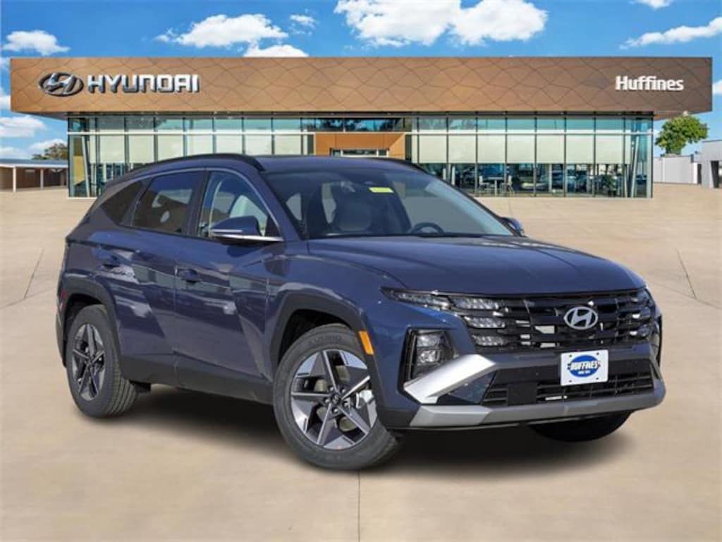 Blue 2026 Hyundai Tucson SEL Premium 4D Sport Utility SEL Premium FWD 8-Speed Automatic with SHIFTRONIC 2.5L I4 DGI DOHC 16V LEV3-SULEV30 187hp Option Group 01, 18" x 7.5J Alloy Wheels, 4-Wheel Disc Brakes, 6 Speakers, ABS brakes, Air Conditioning, Alloy wheels, AM/FM radio: SiriusXM, Apple CarPlay & Android Auto, Auto High-beam Headlights, Auto-dimming Rear-View mirror, Automatic temperature control, Brake assist, Bumpers: body-color, Cargo Net, Cargo Organizer, Cargo Tray, Carpeted Floor Mats, Delay-off headlights, Driver door bin, Driver vanity mirror, Dual front impact airbags, Dual front side impact airbags, Electronic Stability Control, Emergency communication system: Bluelink+, First Aid Kit, Four wheel independent suspension, Front and Rear Mudguards, Front anti-roll bar, Front Bucket Seats, Front Center Armrest, Front dual zone A/C, Front reading lights, Fully automatic headlights, H-Tex Leatherette Seat Trim, Heated door mirrors, Heated Front Bucket Seats, Heated front seats, Illuminated entry, Leather Shift Knob, Leather steering wheel, Low tire pressure warning, Navigation System, Occupant sensing airbag, Outside temperature display, Overhead airbag, Overhead console, Panic alarm, Passenger door bin, Passenger vanity mirror, Power door mirrors, Power driver seat, Power Liftgate, Power moonroof, Power steering, Power windows, Radio data system, Radio: AM/FM/HD Audio System, Rear anti-roll bar, Rear reading lights, Rear seat center armrest, Rear side impact airbag, Rear window defroster, Rear window wiper, Remote keyless entry, Roadside Assistance Kit, Security system, Speed control, Split folding rear seat, Spoiler, Steering wheel mounted audio controls, Tachometer, Telescoping steering wheel, Tilt steering wheel, Traction control, Trip computer, Turn signal indicator mirrors, and Variably intermittent wipers.