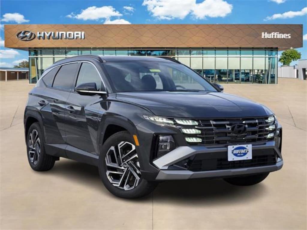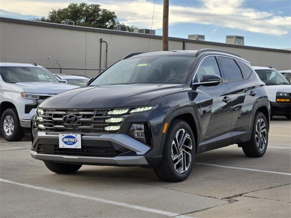 Gray 2026 Hyundai Tucson Limited 4D Sport Utility Limited FWD 8-Speed Automatic with SHIFTRONIC 2.5L I4 DGI DOHC 16V LEV3-SULEV30 187hp Option Group 01, 4-Wheel Disc Brakes, 8 Speakers, ABS brakes, Air Conditioning, All Season Fitted Liners, Alloy wheels, AM/FM radio: SiriusXM, Apple CarPlay & Android Auto, Auto High-beam Headlights, Auto-dimming Rear-View mirror, Automatic temperature control, Brake assist, Bumpers: body-color, Cargo Net, Cargo Tray, Carpeted Floor Mats, Delay-off headlights, Driver door bin, Driver vanity mirror, Dual front impact airbags, Dual front side impact airbags, Electronic Stability Control, Emergency communication system: Bluelink+, First Aid Kit, Four wheel independent suspension, Front anti-roll bar, Front Bucket Seats, Front Center Armrest, Front dual zone A/C, Front reading lights, Fully automatic headlights, Garage door transmitter: HomeLink, Heads-Up Display, Heated & Ventilated Front Bucket Seats, Heated door mirrors, Heated front seats, Heated rear seats, Heated steering wheel, Illuminated entry, Leather Shift Knob, Leather steering wheel, Leather-Trimmed Seat Trim, Low tire pressure warning, Memory seat, Navigation System, Occupant sensing airbag, Outside temperature display, Overhead airbag, Overhead console, Panic alarm, Passenger door bin, Passenger vanity mirror, Power door mirrors, Power driver seat, Power Liftgate, Power moonroof, Power passenger seat, Power steering, Power windows, Radio data system, Radio: Bose Premium w/AM/FM/HD Audio System, Rain sensing wipers, Rear anti-roll bar, Rear reading lights, Rear seat center armrest, Rear side impact airbag, Rear window defroster, Rear window wiper, Remote keyless entry, Security system, Speed control, Split folding rear seat, Spoiler, Steering wheel mounted audio controls, Tachometer, Telescoping steering wheel, Tilt steering wheel, Traction control, Trip computer, Turn signal indicator mirrors, Variably intermittent wipers, Ventilated front seats, and Wheels: 19" x 7.5J Alloy.
