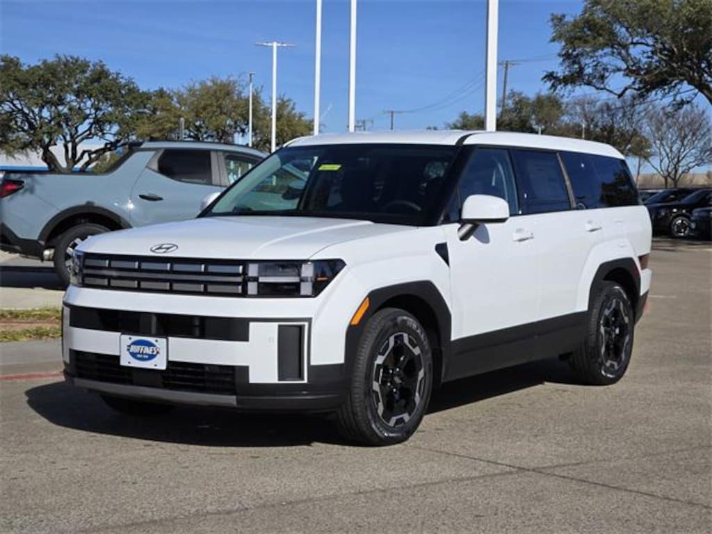 White 2026 Hyundai Santa Fe SE 4D Sport Utility SE FWD 8-Speed Automatic with SHIFTRONIC 2.5L I4 Option Group 01, 18" x 7.5J Alloy Wheels, 3rd row seats: bench, 4-Wheel Disc Brakes, 6 Speakers, ABS brakes, Air Conditioning, All Season Fitted Liners, Alloy wheels, AM/FM radio: SiriusXM, Apple CarPlay & Android Auto, Auto High-beam Headlights, Brake assist, Bumpers: body-color, Cargo Net, Cargo Tray, Carpeted Floor Mats, Delay-off headlights, Driver door bin, Driver vanity mirror, Dual front impact airbags, Dual front side impact airbags, Electronic Stability Control, Emergency communication system, Exterior Parking Camera Rear, First Aid Kit, Four wheel independent suspension, Front anti-roll bar, Front Bucket Seats, Front Center Armrest, Front reading lights, Fully automatic headlights, Heated door mirrors, Illuminated entry, Knee airbag, Leather steering wheel, Low tire pressure warning, Mudguards, Occupant sensing airbag, Outside temperature display, Overhead airbag, Overhead console, Panic alarm, Passenger door bin, Passenger vanity mirror, Power door mirrors, Power Liftgate, Power steering, Power windows, Radio: AM/FM/HD Display Audio, Rear anti-roll bar, Rear seat center armrest, Rear side impact airbag, Rear window defroster, Rear window wiper, Remote keyless entry, Roadside Assistance Kit, Security system, Speed control, Speed-sensing steering, Split folding rear seat, Spoiler, Steering wheel mounted audio controls, Tachometer, Telescoping steering wheel, Tilt steering wheel, Traction control, Trip computer, Variably intermittent wipers, and YES Essentials Stain-Resistant Cloth Seat Trim. Price includes: $1500 - Hyundai HMF Dealer Choice : $1500 discount and 5.39% APR for 24 months. $44.05 per $1000 financed. Available to well qualified buyers who finance through Hyundai Motor Finance. H704. Exp. 02/02/2026