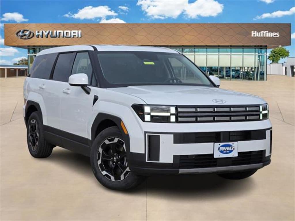 White 2026 Hyundai Santa Fe SE 4D Sport Utility SE FWD 8-Speed Automatic with SHIFTRONIC 2.5L I4 Option Group 01, 18" x 7.5J Alloy Wheels, 3rd row seats: bench, 4-Wheel Disc Brakes, 6 Speakers, ABS brakes, Air Conditioning, All Season Fitted Liners, Alloy wheels, AM/FM radio: SiriusXM, Apple CarPlay & Android Auto, Auto High-beam Headlights, Brake assist, Bumpers: body-color, Cargo Net, Cargo Organizer, Carpeted Floor Mats, Delay-off headlights, Driver door bin, Driver vanity mirror, Dual front impact airbags, Dual front side impact airbags, Electronic Stability Control, Emergency communication system, Exterior Parking Camera Rear, First Aid Kit, Four wheel independent suspension, Front anti-roll bar, Front Bucket Seats, Front Center Armrest, Front reading lights, Fully automatic headlights, Heated door mirrors, Illuminated entry, Knee airbag, Leather steering wheel, Low tire pressure warning, Occupant sensing airbag, Outside temperature display, Overhead airbag, Overhead console, Panic alarm, Passenger door bin, Passenger vanity mirror, Power door mirrors, Power Liftgate, Power steering, Power windows, Radio: AM/FM/HD Display Audio, Rear anti-roll bar, Rear seat center armrest, Rear side impact airbag, Rear window defroster, Rear window wiper, Remote keyless entry, Roadside Assistance Kit, Security system, Speed control, Speed-sensing steering, Split folding rear seat, Spoiler, Steering wheel mounted audio controls, Tachometer, Telescoping steering wheel, Tilt steering wheel, Traction control, Trip computer, Variably intermittent wipers, and YES Essentials Stain-Resistant Cloth Seat Trim.