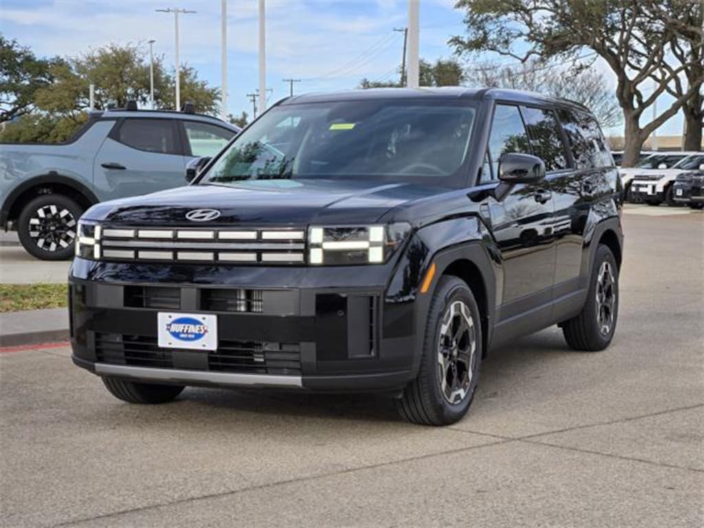 Phantom Black 2026 Hyundai Santa Fe SE 4D Sport Utility SE FWD 8-Speed Automatic with SHIFTRONIC 2.5L I4 Option Group 01, 18" x 7.5J Alloy Wheels, 3rd row seats: bench, 4-Wheel Disc Brakes, 6 Speakers, ABS brakes, Air Conditioning, All Season Fitted Liners, Alloy wheels, AM/FM radio: SiriusXM, Apple CarPlay & Android Auto, Auto High-beam Headlights, Brake assist, Bumpers: body-color, Cargo Net, Carpeted Floor Mats, Delay-off headlights, Driver door bin, Driver vanity mirror, Dual front impact airbags, Dual front side impact airbags, Electronic Stability Control, Emergency communication system, Exterior Parking Camera Rear, First Aid Kit, Four wheel independent suspension, Front anti-roll bar, Front Bucket Seats, Front Center Armrest, Front reading lights, Fully automatic headlights, Heated door mirrors, Illuminated entry, Knee airbag, Leather steering wheel, Low tire pressure warning, Mudguards, Occupant sensing airbag, Outside temperature display, Overhead airbag, Overhead console, Panic alarm, Passenger door bin, Passenger vanity mirror, Power door mirrors, Power Liftgate, Power steering, Power windows, Radio: AM/FM/HD Display Audio, Rear anti-roll bar, Rear seat center armrest, Rear side impact airbag, Rear window defroster, Rear window wiper, Remote keyless entry, Security system, Speed control, Speed-sensing steering, Split folding rear seat, Spoiler, Steering wheel mounted audio controls, Tachometer, Telescoping steering wheel, Tilt steering wheel, Traction control, Trip computer, Variably intermittent wipers, and YES Essentials Stain-Resistant Cloth Seat Trim. Price includes: $1500 - Hyundai HMF Dealer Choice : $1500 discount and 5.39% APR for 24 months. $44.05 per $1000 financed. Available to well qualified buyers who finance through Hyundai Motor Finance. H704. Exp. 02/02/2026