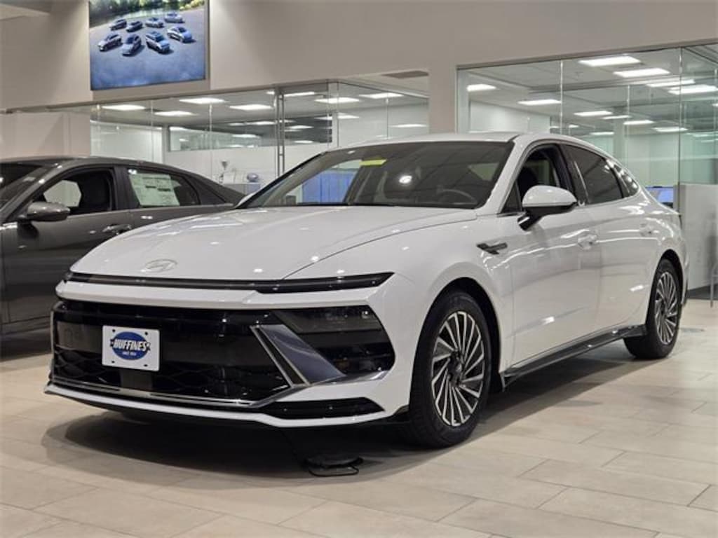 $2,000 off MSRP! New Price! White 2025 Hyundai Sonata Hybrid SEL 4D Sedan SEL FWD 6-Speed Automatic with Shiftronic I4 Option Group 01, 17" x 7.0J Aluminum Alloy Wheels, 4-Wheel Disc Brakes, 6 Speakers, ABS brakes, Air Conditioning, Alloy wheels, AM/FM radio: SiriusXM, Apple CarPlay & Android Auto, Auto High-beam Headlights, Automatic temperature control, Brake assist, Bumpers: body-color, Cargo Net, Cargo Tray, Carpeted Floor Mats, Cloth Seating Surfaces, Delay-off headlights, Driver door bin, Driver vanity mirror, Dual front impact airbags, Dual front side impact airbags, Electronic Stability Control, Emergency communication system: Bluelink+, First Aid Kit, Four wheel independent suspension, Front anti-roll bar, Front Bucket Seats, Front Center Armrest, Front dual zone A/C, Front reading lights, Fully automatic headlights, Heated door mirrors, Heated Front Bucket Seats, Heated front seats, Illuminated entry, Knee airbag, Lane Departure Warning System, Leather steering wheel, Low tire pressure warning, Mud Guards, Occupant sensing airbag, Outside temperature display, Overhead airbag, Overhead console, Panic alarm, Passenger door bin, Passenger vanity mirror, Power door mirrors, Power driver seat, Power passenger seat, Power steering, Power windows, Radio data system, Radio: AM/FM/HD/SiriusXM, Rear anti-roll bar, Rear seat center armrest, Rear side impact airbag, Rear window defroster, Remote keyless entry, Security system, Speed control, Speed-sensing steering, Speed-Sensitive Wipers, Split folding rear seat, Spoiler, Steering wheel mounted audio controls, Tachometer, Telescoping steering wheel, Tilt steering wheel, Traction control, Trip computer, Variably intermittent wipers, and Wheel Locks.