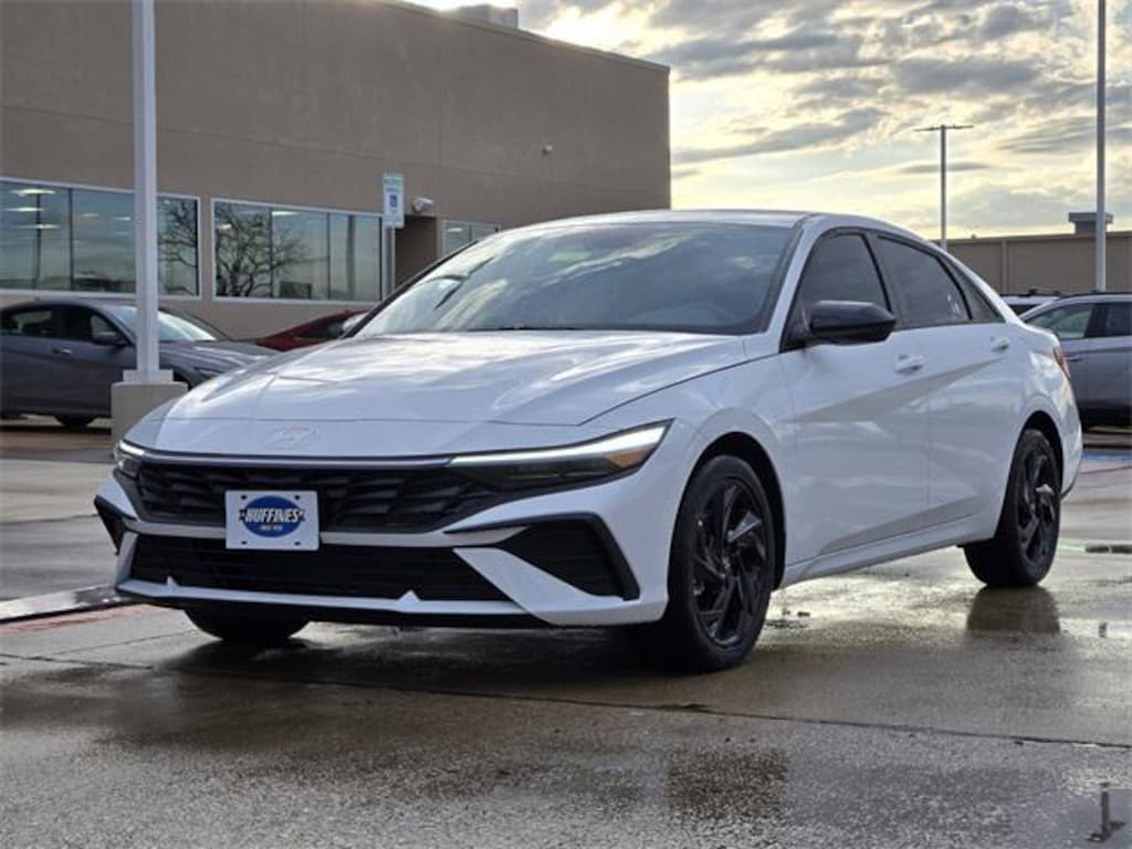 Recent Arrival! White 2026 Hyundai Elantra SEL Sport 4D Sedan SEL Sport FWD CVT I4 Cargo Package (Cargo Blocks, Cargo Net, and Cargo Tray), Option Group 01, 4-Wheel Disc Brakes, 6 Speakers, ABS brakes, Air Conditioning, Alloy wheels, AM/FM radio, Apple CarPlay & Android Auto, Auto High-beam Headlights, Automatic temperature control, Brake assist, Bumpers: body-color, Cargo Side Bins, Carpeted Floor Mats, Delay-off headlights, Driver door bin, Driver vanity mirror, Dual front impact airbags, Dual front side impact airbags, Electronic Stability Control, Exterior Parking Camera Rear, First Aid Kit, Front anti-roll bar, Front Bucket Seats, Front Center Armrest, Front dual zone A/C, Front reading lights, Front wheel independent suspension, Fully automatic headlights, Illuminated entry, Low tire pressure warning, Occupant sensing airbag, Outside temperature display, Overhead airbag, Overhead console, Panic alarm, Passenger door bin, Passenger vanity mirror, Power door mirrors, Power steering, Power windows, Premium Cloth Seat Trim, Radio: AM/FM/HD Display Audio, Rear side impact airbag, Rear window defroster, Remote keyless entry, Roadside Assistance Kit, Security system, Speed control, Speed-sensing steering, Spoiler, Steering wheel mounted audio controls, Tachometer, Telescoping steering wheel, Tilt steering wheel, Traction control, Trip computer, Variably intermittent wipers, and Wheels: 17" x 7.0J Alloy Gloss Black w/Dark Finish.