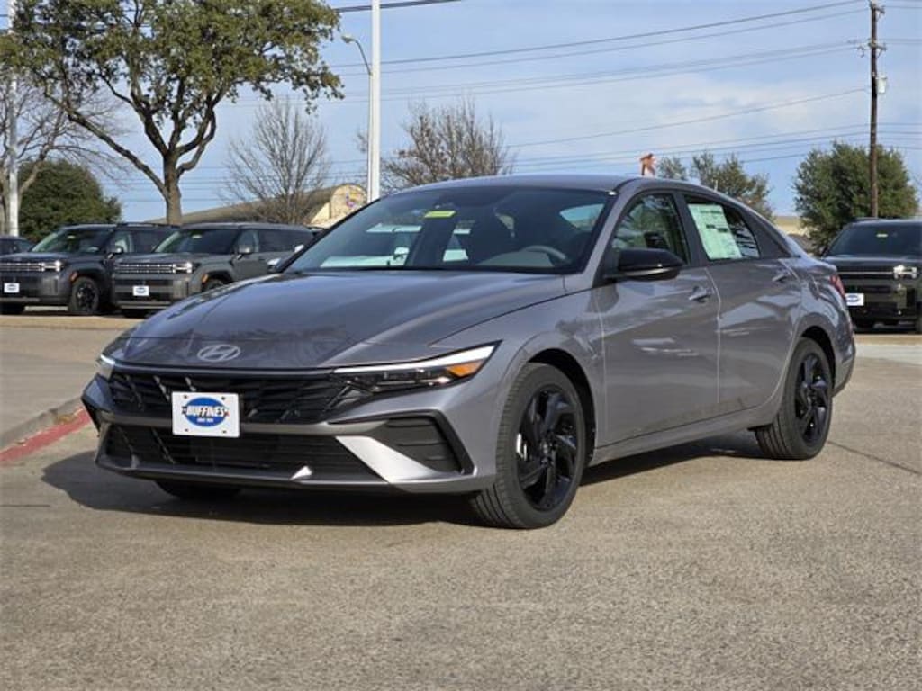 Fluid Metal 2026 Hyundai Elantra SEL Sport 4D Sedan SEL Sport FWD CVT I4 Option Group 01, 4-Wheel Disc Brakes, 6 Speakers, ABS brakes, Air Conditioning, All-Season Fitted Liners, Alloy wheels, AM/FM radio, Apple CarPlay & Android Auto, Auto High-beam Headlights, Automatic temperature control, Brake assist, Bumpers: body-color, Cargo Tray, Carpeted Floor Mats, Center Console Tray, Delay-off headlights, Driver door bin, Driver vanity mirror, Dual front impact airbags, Dual front side impact airbags, Electronic Stability Control, Exterior Parking Camera Rear, First Aid Kit, Front anti-roll bar, Front Bucket Seats, Front Center Armrest, Front dual zone A/C, Front reading lights, Front wheel independent suspension, Fully automatic headlights, Illuminated entry, Low tire pressure warning, Occupant sensing airbag, Outside temperature display, Overhead airbag, Overhead console, Panic alarm, Passenger door bin, Passenger vanity mirror, Power door mirrors, Power steering, Power windows, Premium Cloth Seat Trim, Radio: AM/FM/HD Display Audio, Rear side impact airbag, Rear window defroster, Remote keyless entry, Security system, Speed control, Speed-sensing steering, Spoiler, Steering wheel mounted audio controls, Tachometer, Telescoping steering wheel, Tilt steering wheel, Traction control, Trip computer, Variably intermittent wipers, and Wheels: 17" x 7.0J Alloy Gloss Black w/Dark Finish.